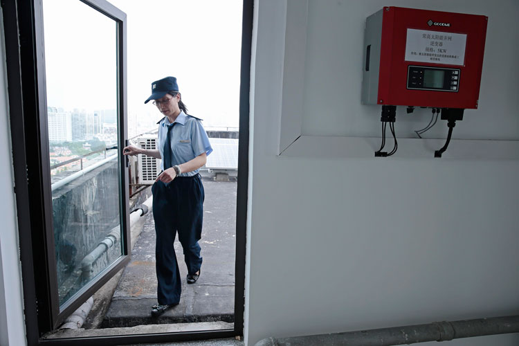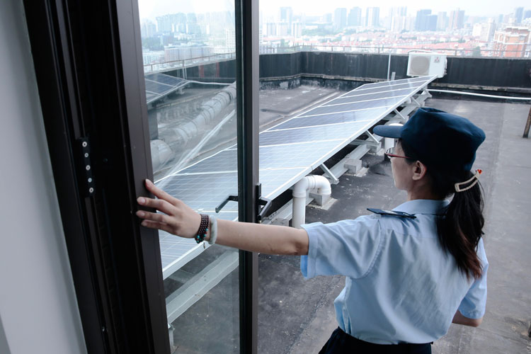 小区利用太阳能发电的最初创意源自垃圾箱房改造。曹杨新村街道南梅园居民区常高公寓业委会主任李础农介绍,小区的垃圾箱房一直存在严重的扬尘问题,业委会在最开始的改造方案中,计划在垃圾箱房上装上一个阳光顶,“后来考虑到小区清洁工人、务工人员工作很辛苦,就想着能不能在垃圾站屋顶装一个太阳能发电板,解决他们的热水洗澡等生活问题。这一想法不仅得到了业主支持,也得到街道等职能部门支持。
