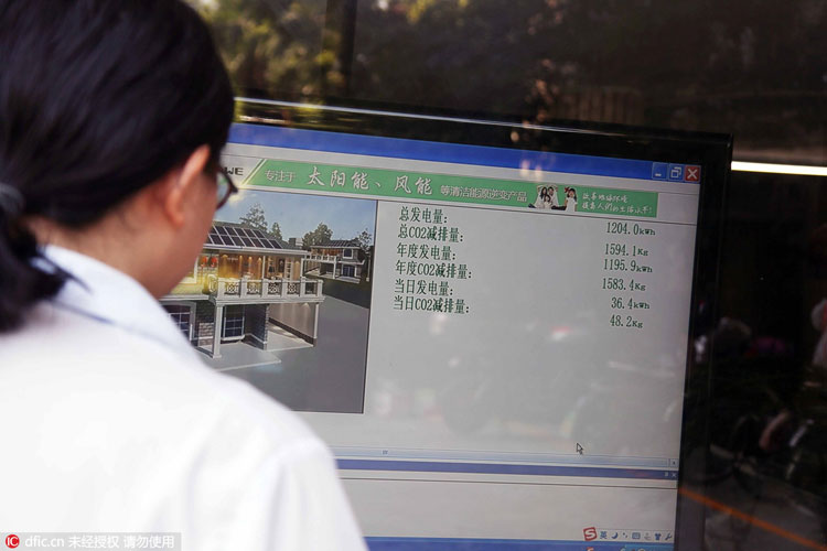 当时他提出建议,借着小区正在创建市低碳社区的契机,在小区内开展低碳改建,让太阳能发电能惠及全体业主。居民区党总支当即与街道职能部门对接,请来专家,实地勘察调研、协助业委会与业主多次沟通商议,最终确定在小区两幢高楼楼顶、垃圾箱房及变电站上盖安装分布式光伏发电板,以利用光伏发电为小区公用设施运转提供能源,同时安装电子显示器,具体列示当天放电量、累计发电量、节约用电量等节能降耗数据。