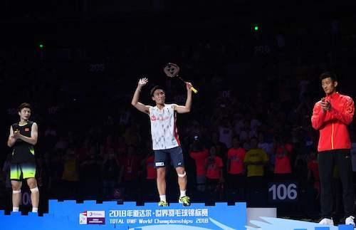 图片说明:桃田贤斗为日本夺得世锦赛第一金