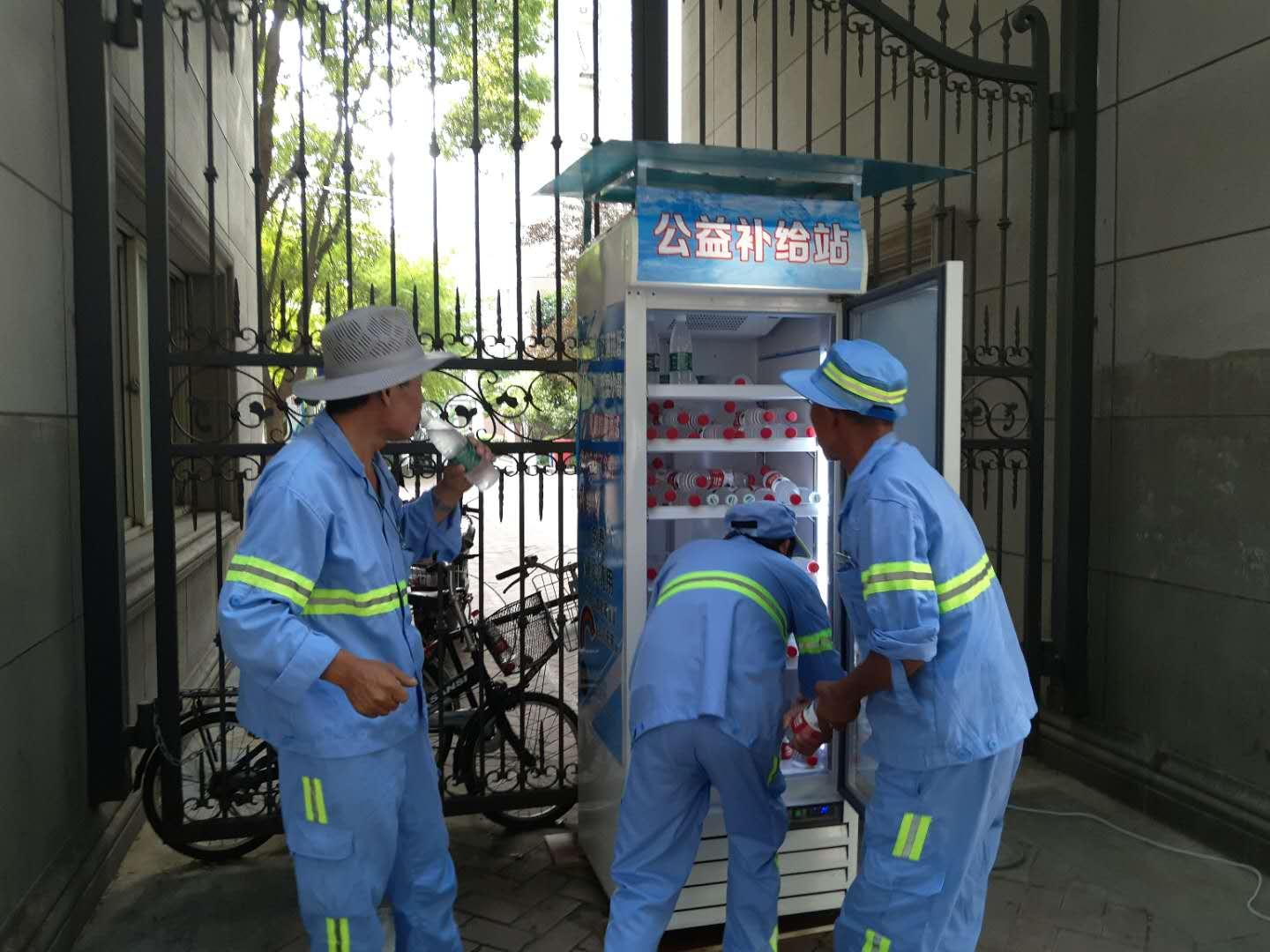 在苏家巷居委会的协调下,北美公寓物业提供场地和冰箱夜间管理,魔都SPA品牌运营管理中心提供冰箱用电,四季汇鲜提供冰箱等,大家每天分3次为冰箱补水总计200瓶,除了提供盐汽水、矿泉水,还有毛巾、风油精等爱心小物品。
