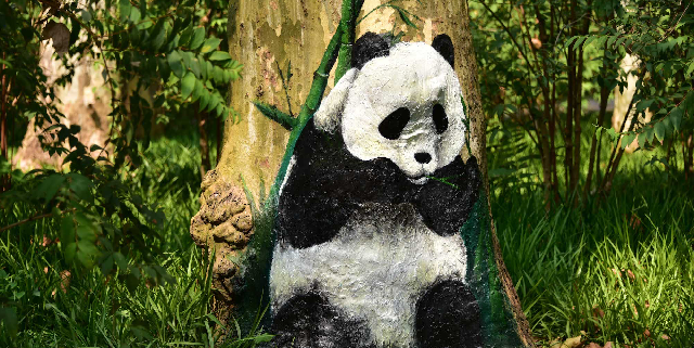 盛夏的共青森林公园,除了葱葱绿意之外,近日还多了一群小动物:国宝大熊猫、长颈鹿、考拉、火烈鸟……可是,它们竟然都住在树干上或者树干里。这是怎么回事?