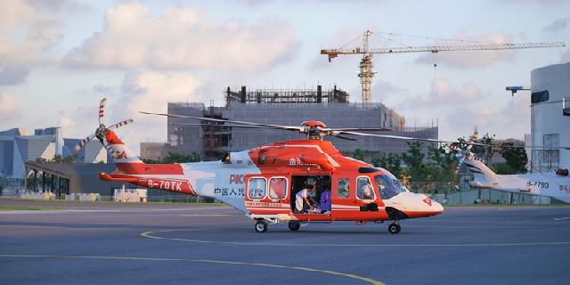 据悉,执行本次任务的是金汇通航AW139专业医疗构型直升机,直升机机舱装备包含有除颤监护仪、呼吸机、注射泵、吸引器、医用氧气瓶,均已通过专业的适航认证,随机的还有专业的医护人员,可为患者提供紧急救护,保证飞行途中患者的生命体征稳定。