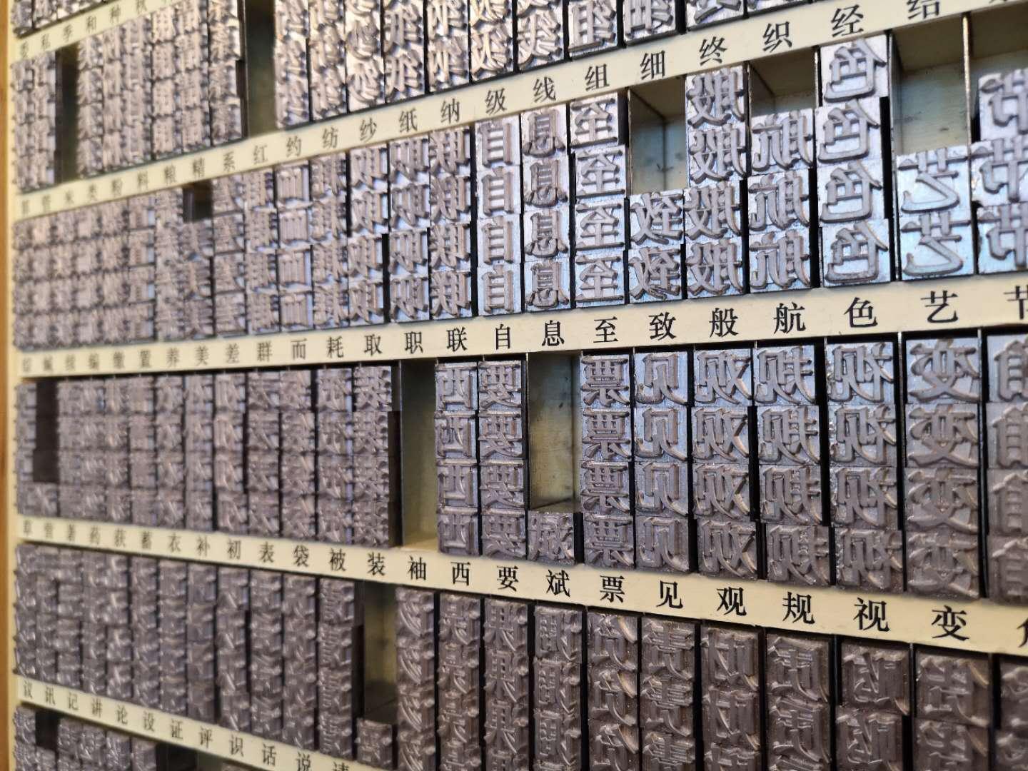 而这面墙上的就是现在常用的印刷活字,就是“铅字”,是以金属铅为主,用铸字机铸造出来的。