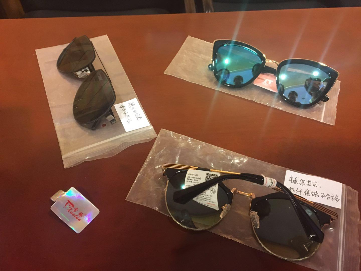 三是抗汗腐蚀不合格,有1个批次。上海市浦东新区陆家嘴街道罗瑛眼镜店在三叶眼镜城销售的标称由厦门鸿益利光学科技有限公司生产的“芭芭拉”牌太阳镜(型号规格:偏光/8956、8955 ;生产日期或批号:B20180108),抗汗腐蚀实测,镜圈下缘变色,有腐蚀点(标准要求应无腐蚀点或变色,镀层不锈蚀、剥蚀或脱落),与标准不符。抗汗腐蚀不合格,一方面容易出现镜架褪色、镀层剥落等问题,另一方面镜架中的镍、铅等重金属元素易析出,可能对配戴者造成伤害。