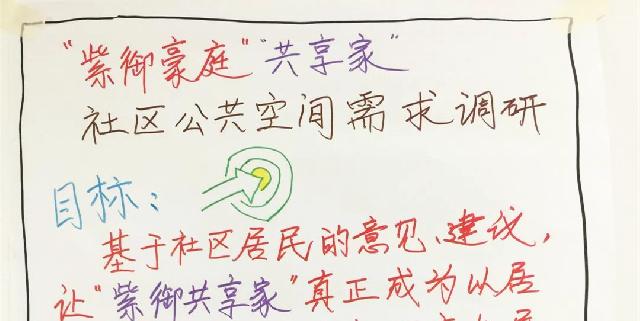为了更好地利用公共空间,满足居民多元化需求,居委会特此举办了“紫御共享家”公共空间需求工作坊活动,也是为下一步这一平台的建立奠定基础。