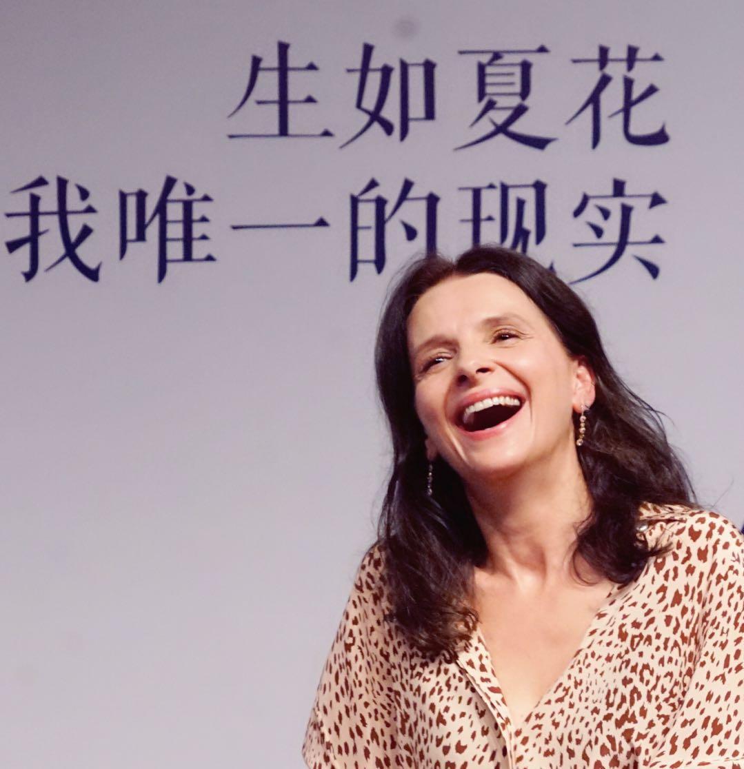 ■54岁了,比诺什笑起来依然是一朵盛开的夏花(本版摄影 何雯亚)
