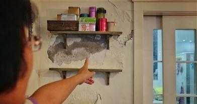 房屋状况很吓人,物业派人上门一看,说电线泡水了,渗漏一直没有修好过。为解决燃眉之急,工人揭掉墙皮,挖开线槽,把里面的水晾干,又装上去。