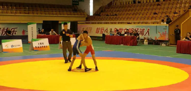 9月15日,在上海市第十六届运动会国际式摔跤比赛首日的古典式摔跤比赛中,虹口摔跤队吕永乐斩获男子 85 公斤冠军!