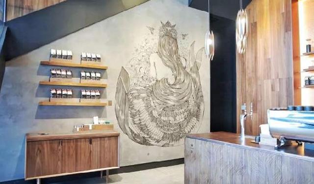 眼光犀利的小资君一进店,就被左墙上的“背影杀”勾了魂。这这这,难道是?星爸爸logo上的美人鱼姐姐?!话不多说,让我先跟人家合个影!