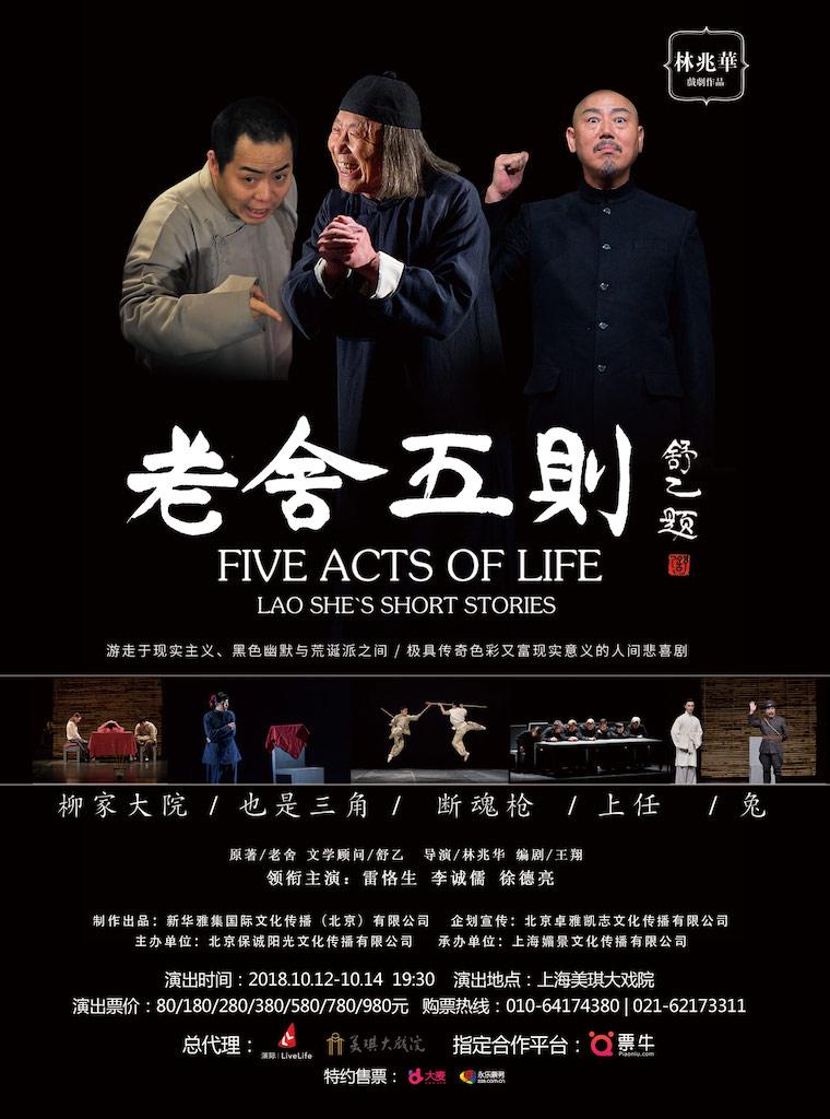 10月12日--14日,由林兆华导演、舒乙担当艺术顾问,著名表演艺术家雷恪生、李诚儒、徐德亮领衔主演的话剧《老舍五则》将在上海美琪大戏院连演三场。