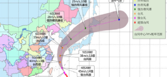 并将于明天夜里越过上海同纬度转向东北方向移动。