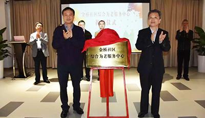 浦东新区副区长陈希、金桥镇党委书记王志荣一同为金桥社区综合为老服务中心揭牌。