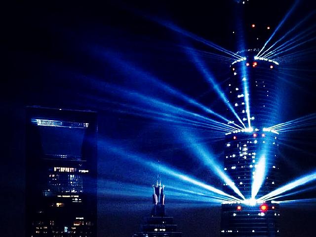 除了浦江这一边的外滩,对岸的东方明珠、上海中心大厦等也被灯光装扮一新,光芒璀璨↓