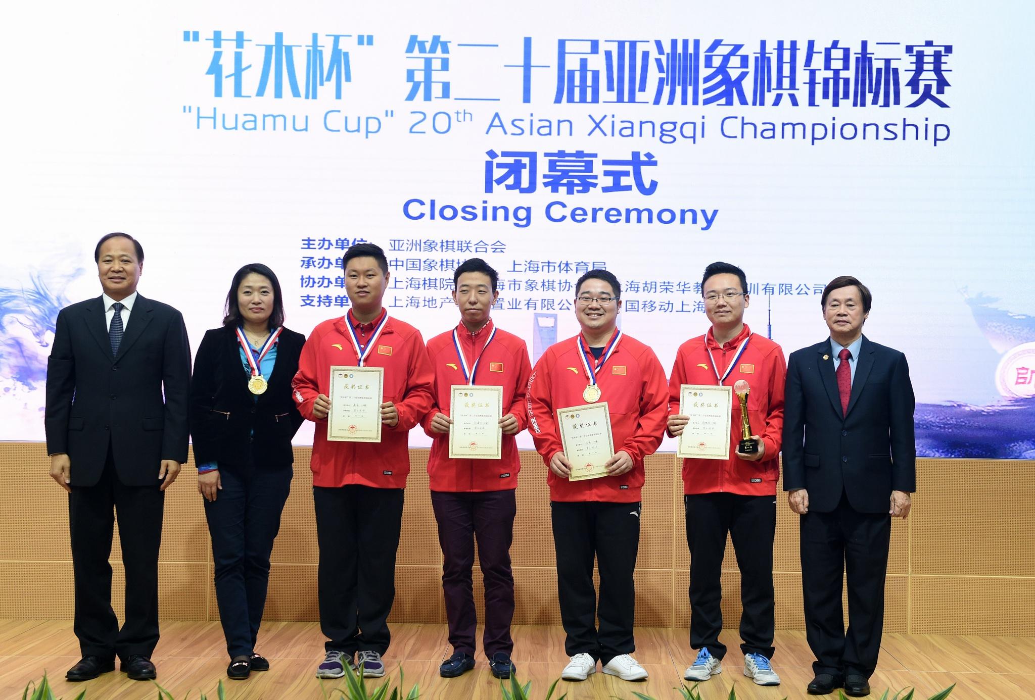 亚洲象棋联合会名誉顾问、象棋特级大师胡荣华,中国象棋协会副主席、上海市象棋协会会长王连云,总局棋牌中心象棋部主任、中国象棋协会秘书长郭莉萍,市棋牌中心主任、上海棋院院长单霞丽,上海市体育局群体处副处长陈慧,花木街道党工委委员、办事处副主任张晓山一同出席闭幕式并为获得名次的参赛队和棋手颁奖。