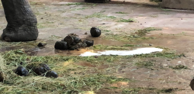 据悉,上海动物园的动物一年需要消耗各种饲料约1800多吨。吃进去的饲料经过消化吸收,最终形成粪便被排泄在动物展区的各个角落。每年,这些动物产生的垃圾总共约1200吨左右!铲屎官给周到君拍了一张大象粑粑的照片,周到君看着不大啊,可是,铲屎官说,这些粑粑一个就要重好几斤~即使是冬日,几个壮小伙都要铲粪铲出一身汗。如果每天不能及时清运出展区,怕是要“粪满为患”了。
