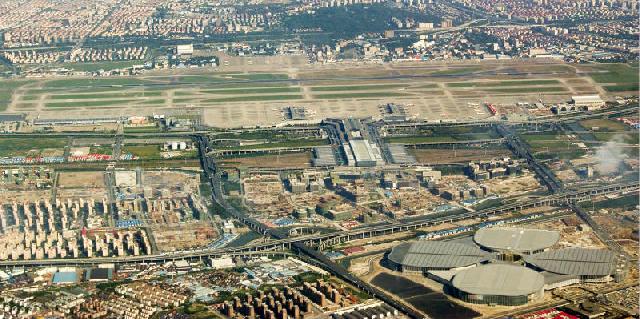 先来看看飞友阿卡在飞机上拍到的“四叶草”吧。这是阿卡在北京回上海的航班上拍摄到的,这和平时大家看到的会展中心完全是另一个视角,四瓣叶片清晰可见。