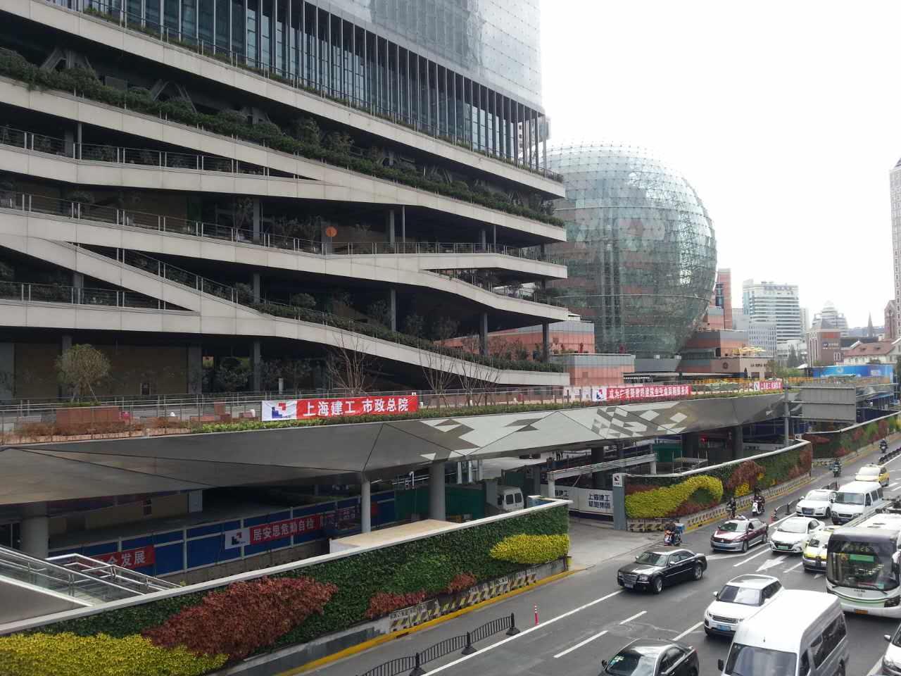 上图左侧是既有的徐家汇过街天桥,右侧是新建的空中连廊,它们已连上了
