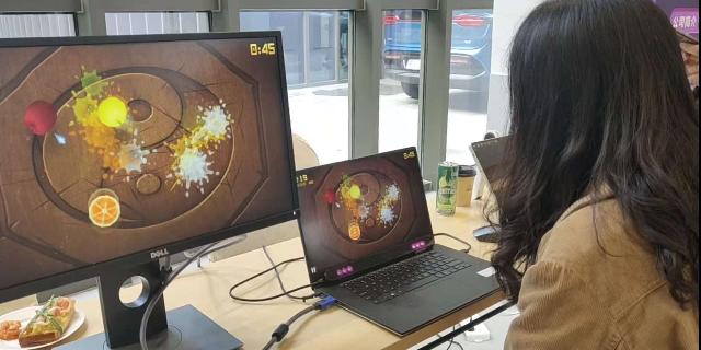 简单的几个步骤之后,体验者就可以尝试用“眼神杀”玩切西瓜的游戏了。