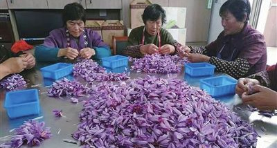 每年11月中下旬是藏红花收获、剥丝的季节,种植户们要手工将花丝剥下,然后迅速烘干。由于藏红花花期短,为了保证品质,种植户们往往会通宵达旦工作。