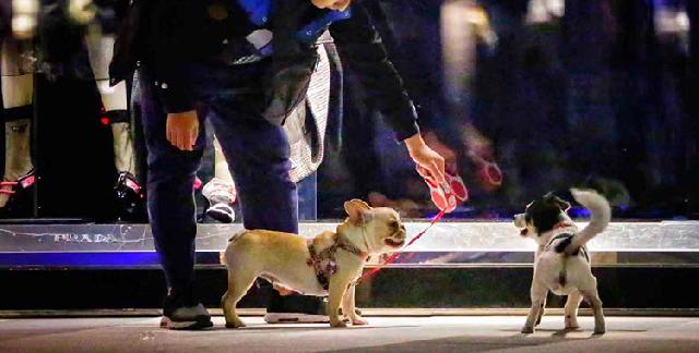 ▲主人带着狗狗散步