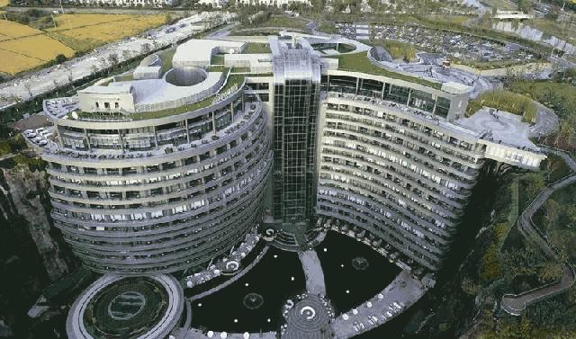 作为世界上海拔最低的酒店,这座依附采石坑崖壁而建的酒店已经和迪拜帆船酒店同时入选世界十大建筑奇迹中的两大酒店类奇迹,据介绍建设这座酒店耗时9年。