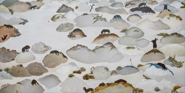 他画中的世界:生命的模样都是以孤独的复数存在。个别的感受与思考的变化,交织成俯看者的观察,也是阅读者自己个人的