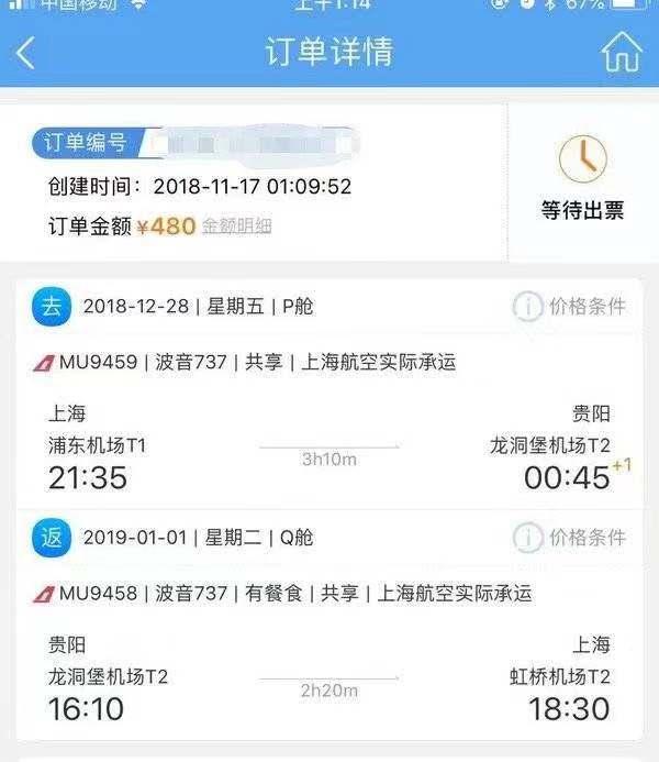 在东航官网搜索往返机票信息,票价一样低到惊人。