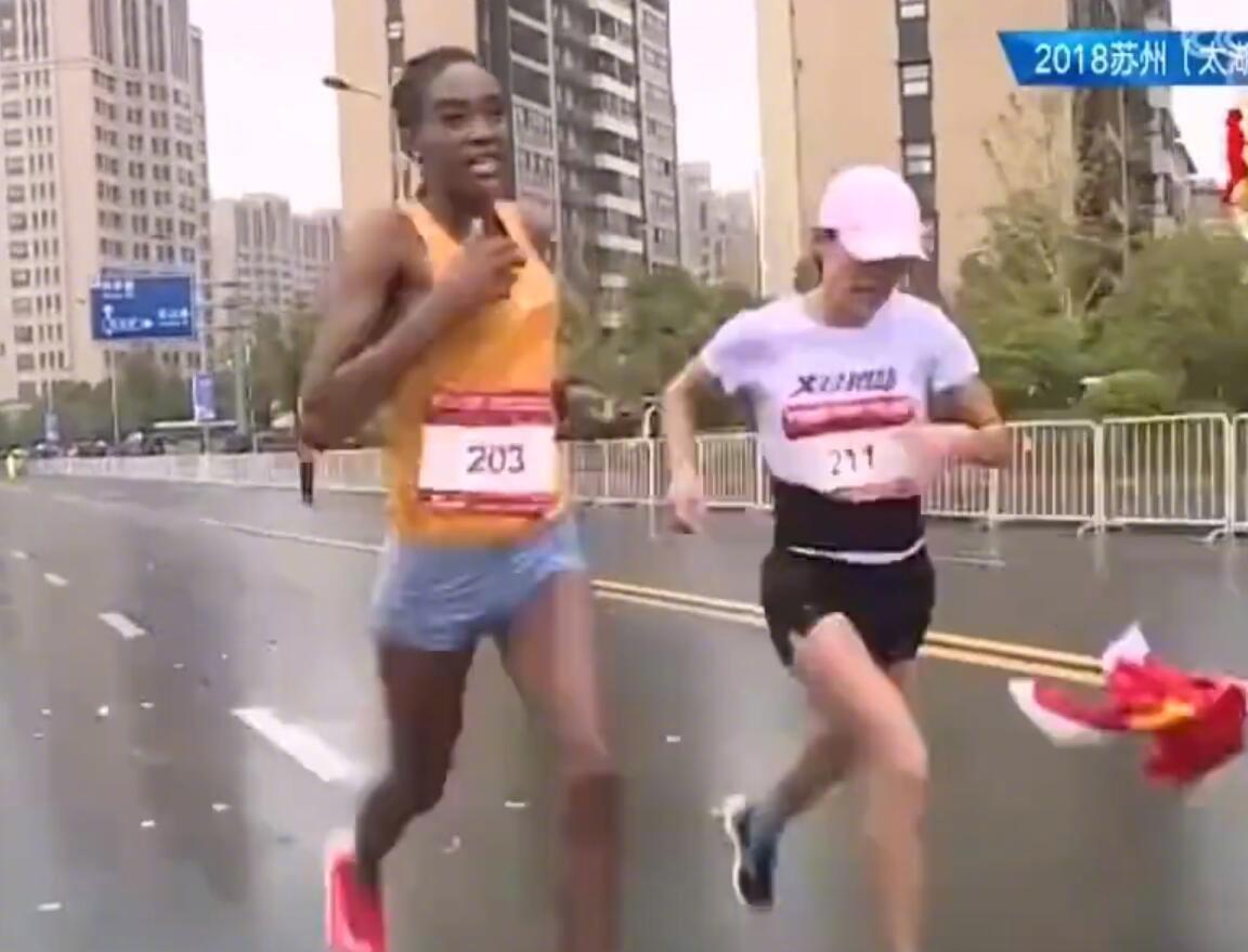 昨天早上进行的苏州马拉松赛上发生争议一幕。中国选手何引丽在比赛快结束时和一名埃塞俄比亚选手在激烈地争夺冠军。两人此时都已经快精疲力尽了,要知道在马拉松赛场上打败东非选手是一件极其不容易的事。