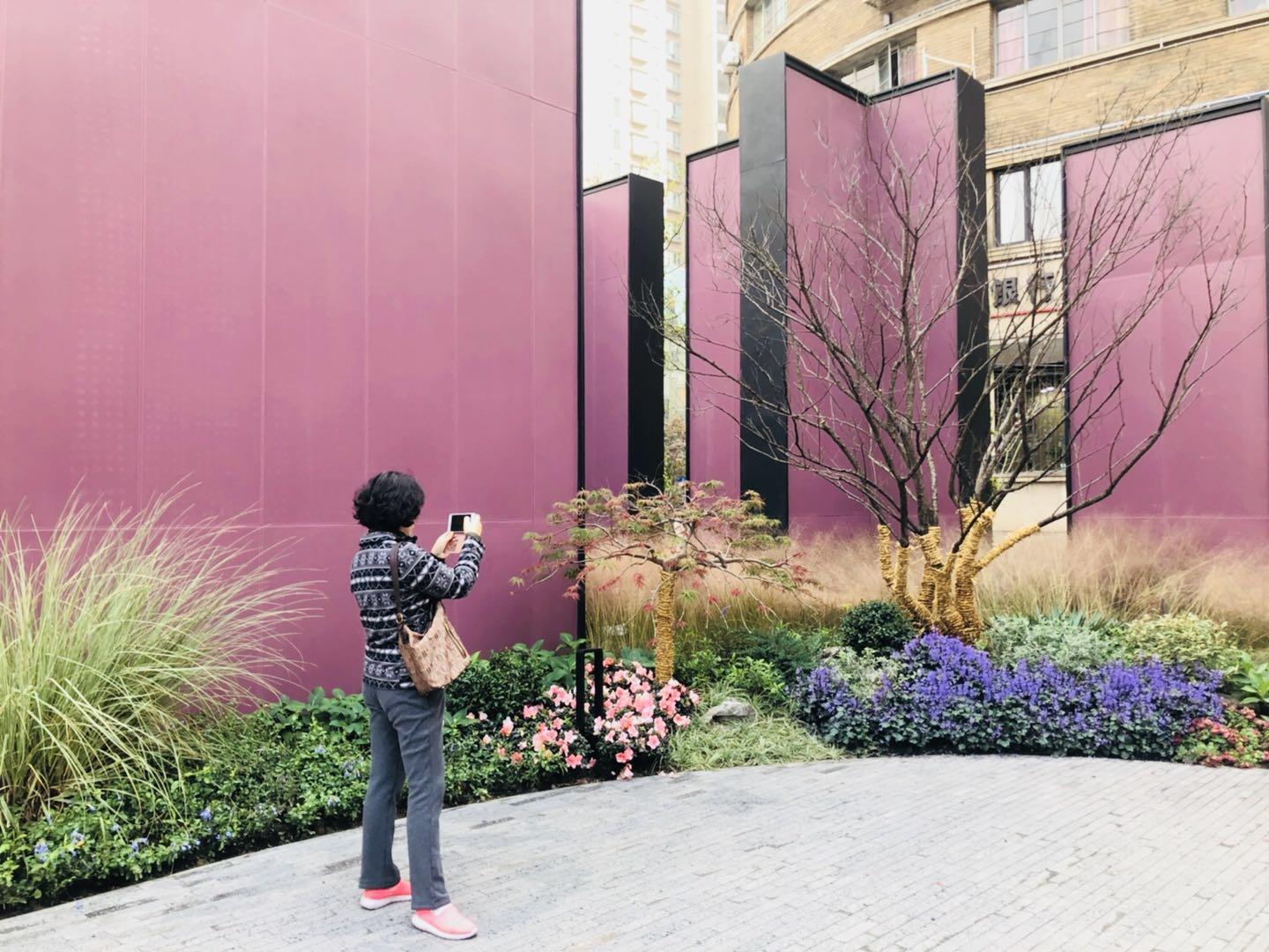 近期经过地铁南京西路站附近的小伙伴们是否惊喜地发现,原本位于南京西路、石门一路、吴江路商业街五岔路口西南角的一处工地围墙目前已经拆除,露出了高度达5.5米的垂直绿墙及内部庭院。路过市民纷纷拿出手机在此留影,颇有网红新景气质。