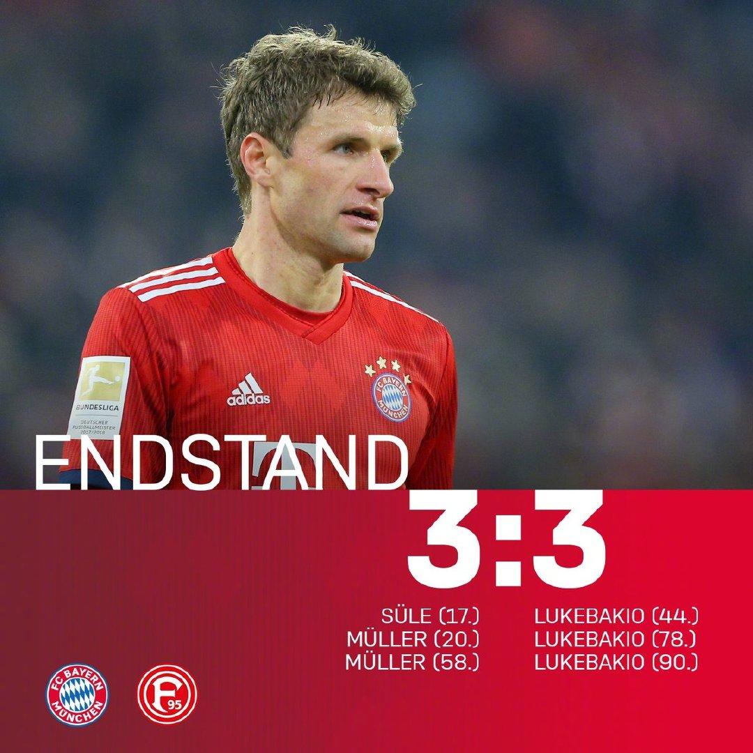 皇马的比赛结束后,拜仁那边也出问题了。主场面对积分榜倒数第二的杜塞尔多夫——法兰克福之前7比1大胜的升班马,赛前外界普遍预期拜仁将以一场大胜恢复霸气,没想到却遭到一场耻辱性的平局。