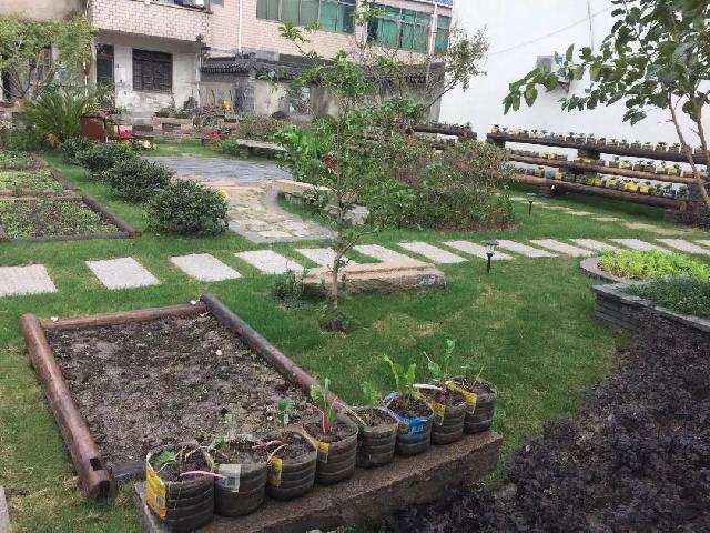 为了体现“公园”和“菜园”两个理念,居委干部和3位“园长”商量,分工合作。居委干部主动协调各方资源,用草坪、花卉、灌木、绿树等勾勒出微公园的样貌,而“园长”们则负责在公园里开垦出9个“微型菜园”,每个“菜园”都只占半分地左右,利用用废砖、木条等围成规则的形状。