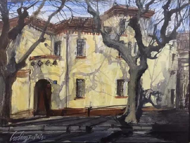 不同于拍照的纪实感,绘画必须是画家有温度的创作,得是融入个人生活情怀来为这个建筑注入气息和生命力,以此来突出景的神韵,这方面罗陵君对自己有着超高严谨的标准和独特的创作构思及艺术表现力。