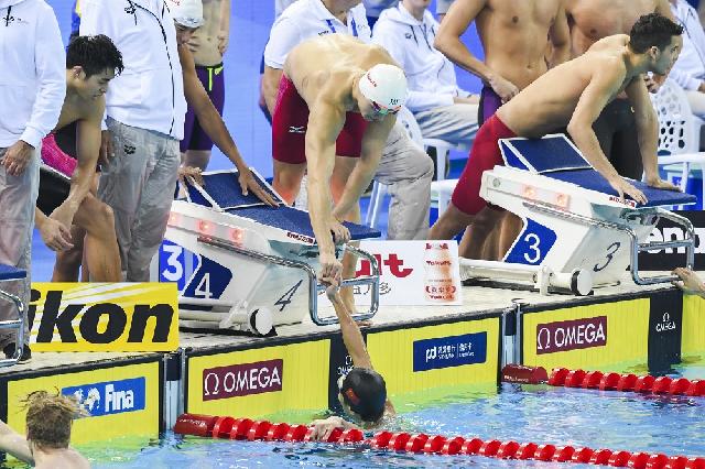 比赛中,第3棒孙杨的表现依然非常出色,接棒时处在第3的他,从倒数第2个25米就开始冲刺,依靠自己强劲的冲刺能力赶超了两个对手,第一个进入交接棒。不过此前参加了个人项目的汪顺,虽然拼尽全力,但最终排名第3。比赛结束后,汪顺已经连爬上岸的力气都已经没有了,被孙杨和季新杰拖上岸边。