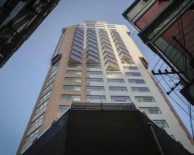12月15日记者来到了南京东路201号,这座原先的华电大楼现已变成一间名为艾迪逊的酒店,无论是酒店的装潢还是格局都非常的摩登时尚,酒店已经停止施工。靠近大厦可以发现,酒店的底层外立面仍是咖啡色的瓷砖,而高层的外立面则看不出瓷砖,取而代之的是颜色相近的涂料。