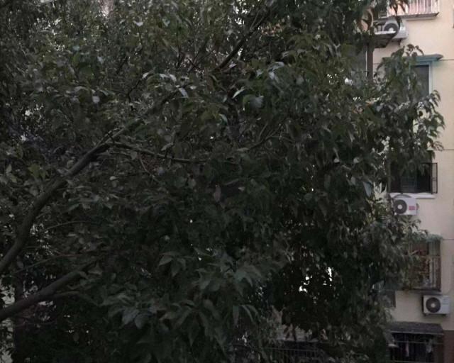 家住虹口区凉城路1201弄某号4楼的姚先生,1992年住进这个小区的时候,窗前光秃秃的,抬头是天,低头是地,别的啥都没有。可是,近些年来,隔壁小区学府花苑院墙边一颗香樟树拼命生长,粗壮浓密的枝叶很快就凑到姚先生家的窗口。天晴鸟鸣不止,落雨树叶敲窗。这么好的“意境”,就这样无可阻挡的“找”上门来了!姚先生说,他只要一伸手,就能摘到树叶子。