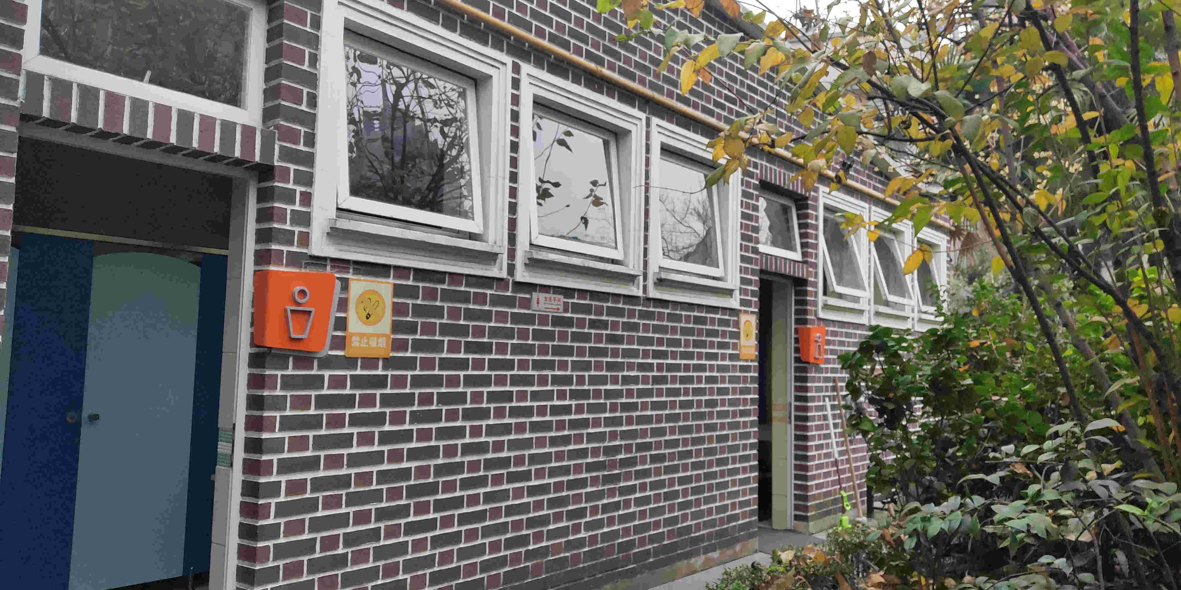 静安雕塑公园3号门的这间厕所紧靠成都北路,走过绿树掩映的一段小路就可以到达。