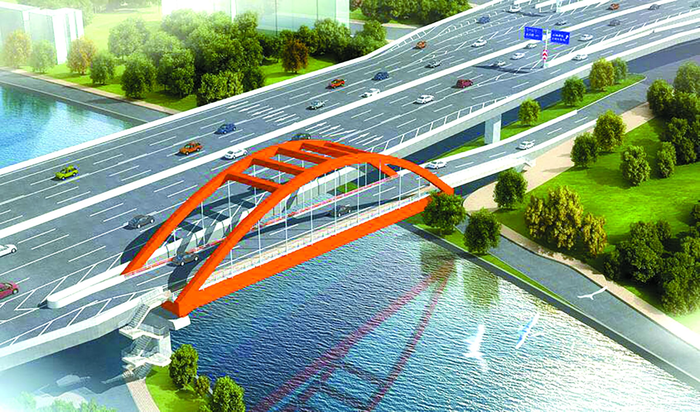 而新建ZD下匝道全长约280米,由苏州河南岸南北高架处拼宽,连接新建跨苏州河钢拱桥,至苏州河北岸(共和新路恒通路路口)落地。该匝道通车后,苏州河南岸的过河车辆可以由现有新闸路上匝道,经新建苏州河钢拱桥,到达苏州河以北区域,避免通过天目路转盘由海宁路或梅园路匝道口落地,大大减少了过河车辆绕行的时间。这两条匝道的建成为北横通道天目路高架主线启动创造有利条件。