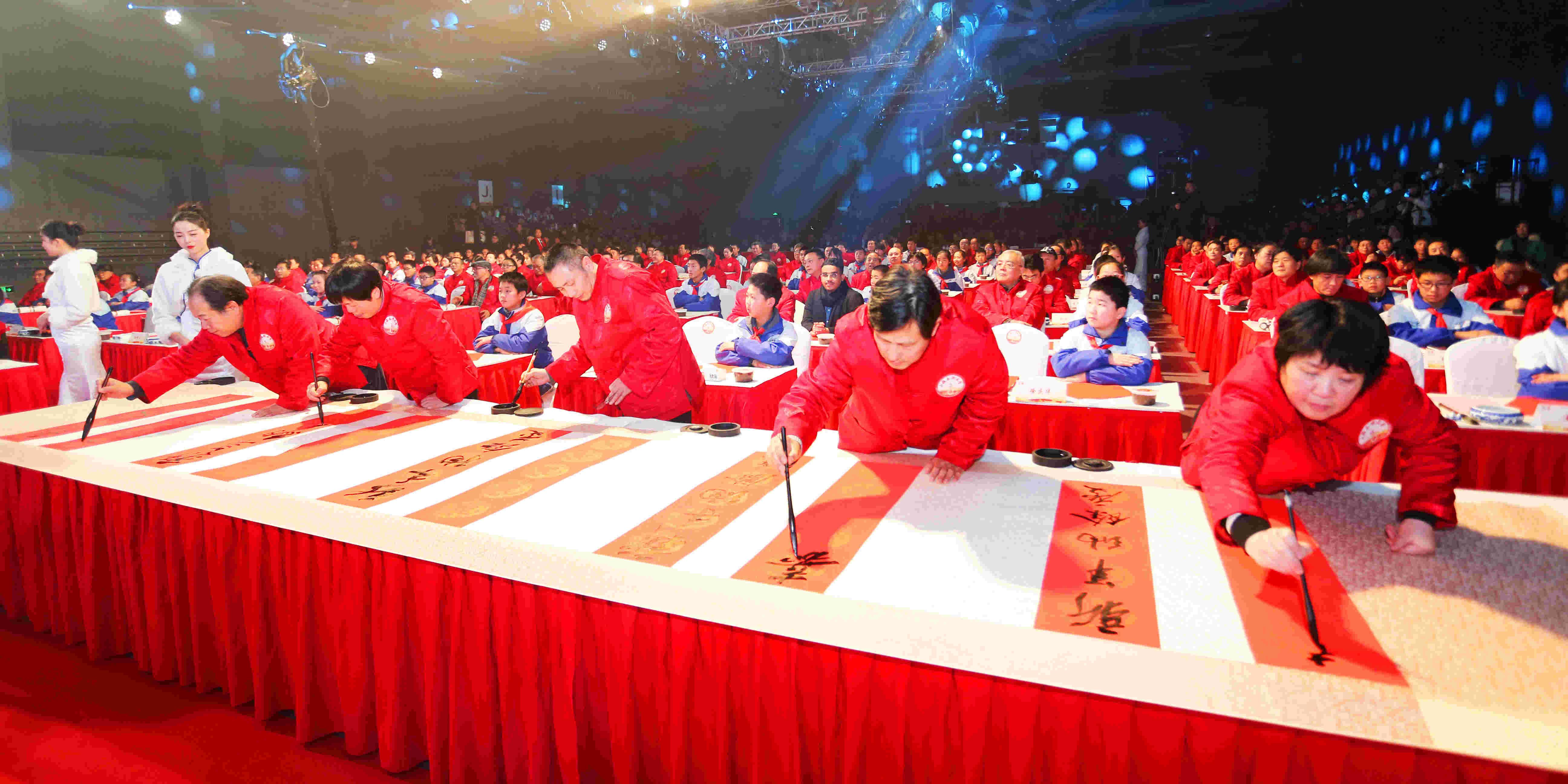 活动还将书法艺术和文艺表演结合起来,著名书法艺术家刘小晴现场挥毫,与水袖舞者共同完成表演《功夫墨韵》,送上“岁畅春和”的美好祝福。在杂技表演中,由书法家提写的300张福字拼贴而成“福满浦江”四字从天而降,将整场活动推向高潮。
