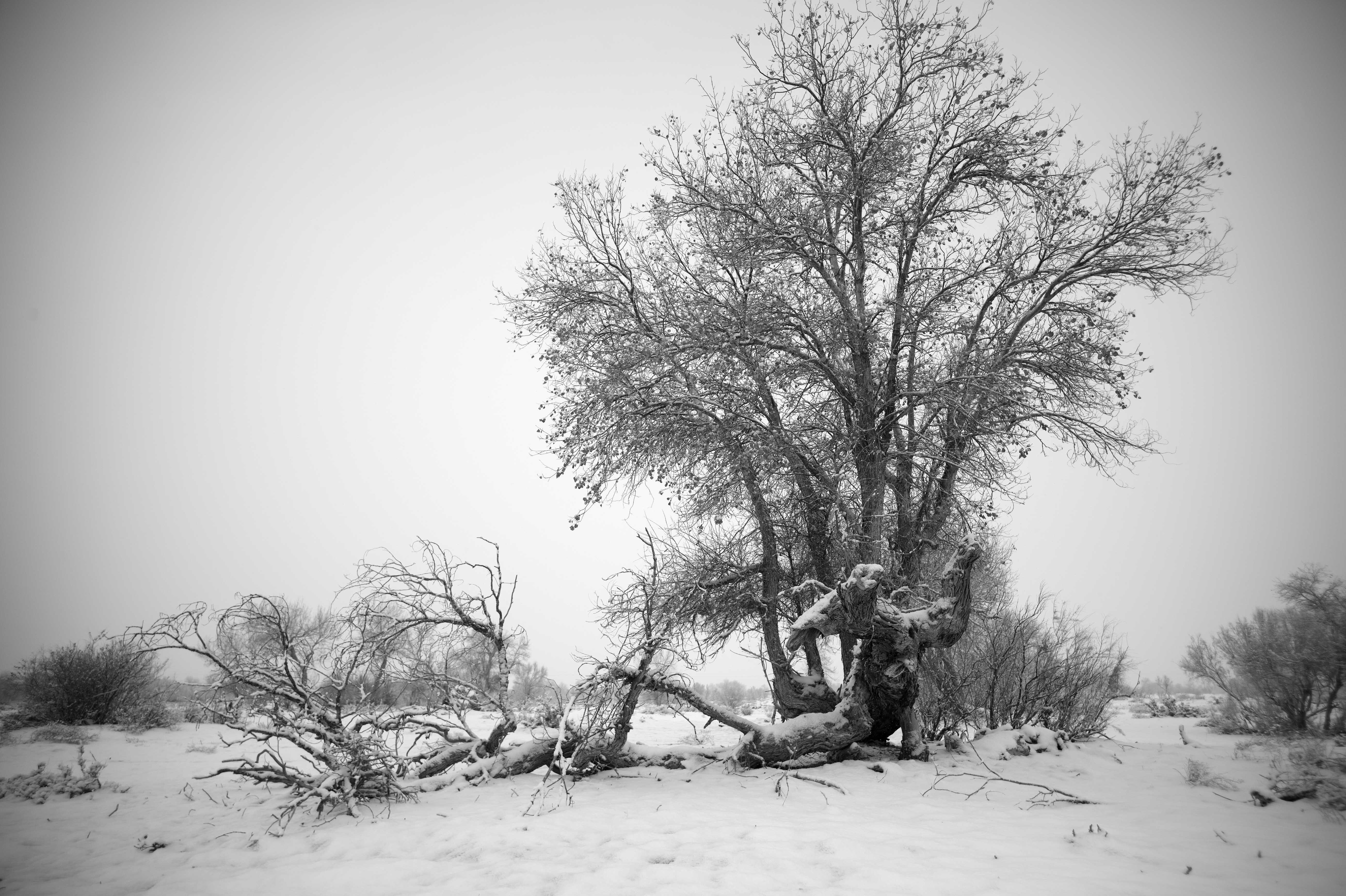 胡杨的美,也不是只美在秋季,冬天雪后,胡杨林更让人心悸。