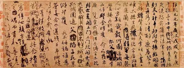 观看此稿,可以强烈感受到颜真卿书写时的感情起伏和渲泄。他不是在写书法作品,他是在为堂兄和侄儿写祭文打草稿,因此写作时完全是由情绪控制的。他行笔忽慢忽快,时疾时徐,欲行复止。字与字上牵下连,似断还连,完全不似他平日书风。