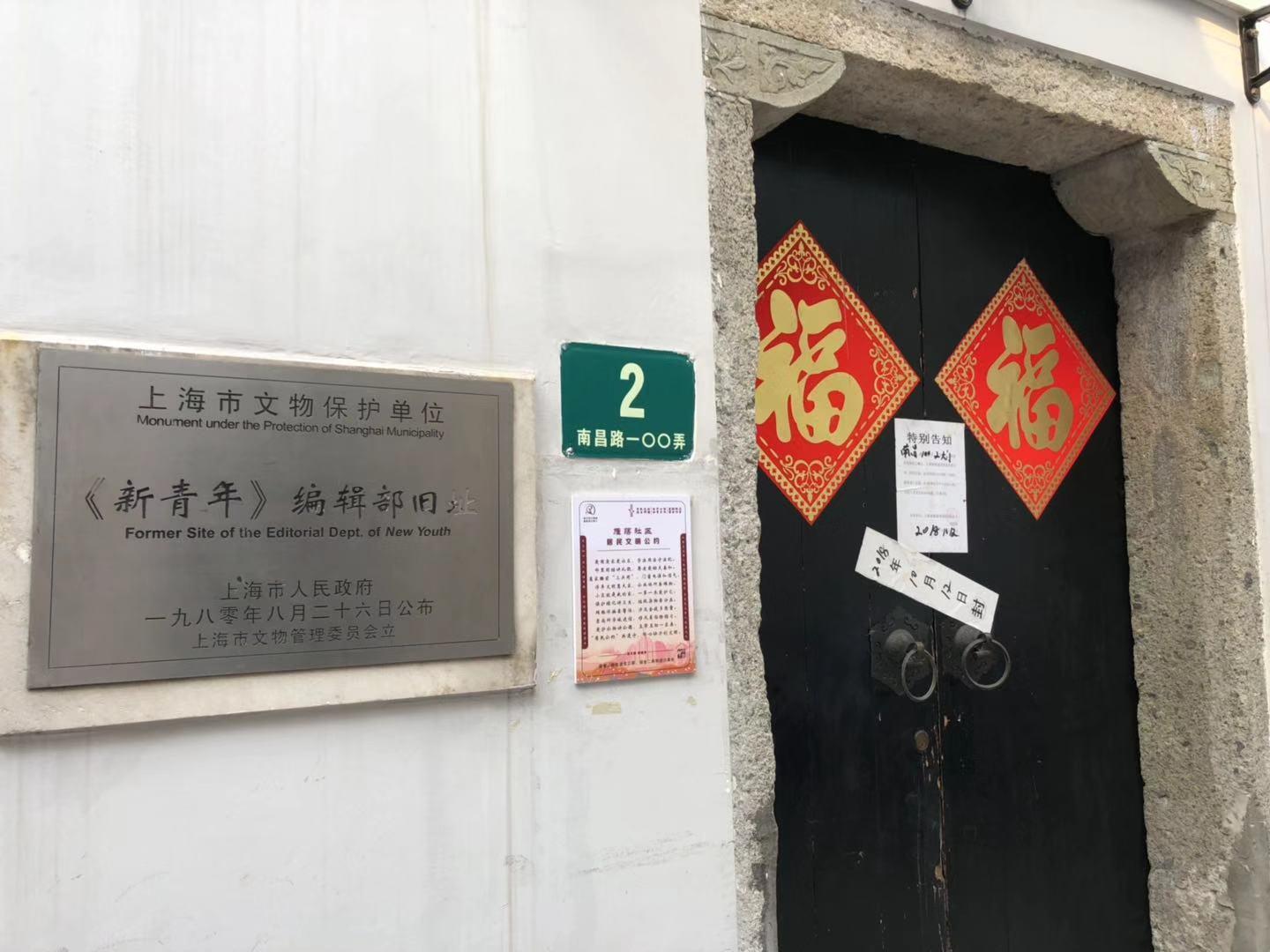 小编来到此处,看到大门紧闭已经贴上封条。门口镶着一块铭牌,上面写着:上海市文物保护单位《新青年》编辑部旧址,上海市人民政府一九八零年八月二十六日公布,上海市文物管理委员会立。