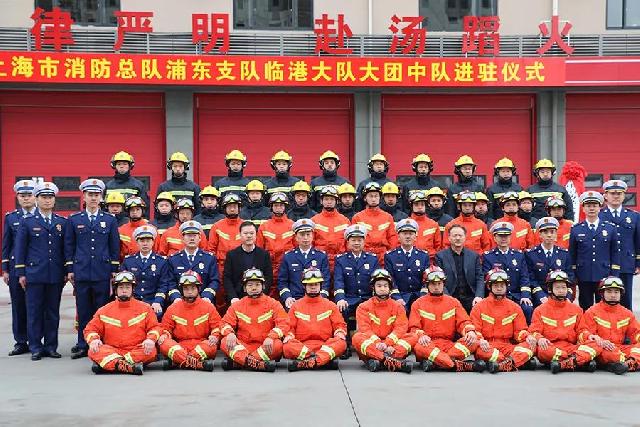 1月29日上午,浦东支队临港大队大团中队举行进驻揭牌仪式。上海市消防总队副总队长林江、上海市消防总队浦东支队支队长姜亦山、上海市消防总队浦东支队政治委员法征宇、大团镇党委书记董军、大团镇党委副书记、镇长王震东、上海市消防总队浦东支队参谋长戴启超、上海市消防总队浦东支队后勤处长缪旭军、上海市消防总队浦东支队临港大队大队长刘臻华、大团中队全体指战员、政府专职消防员参加揭牌仪式。