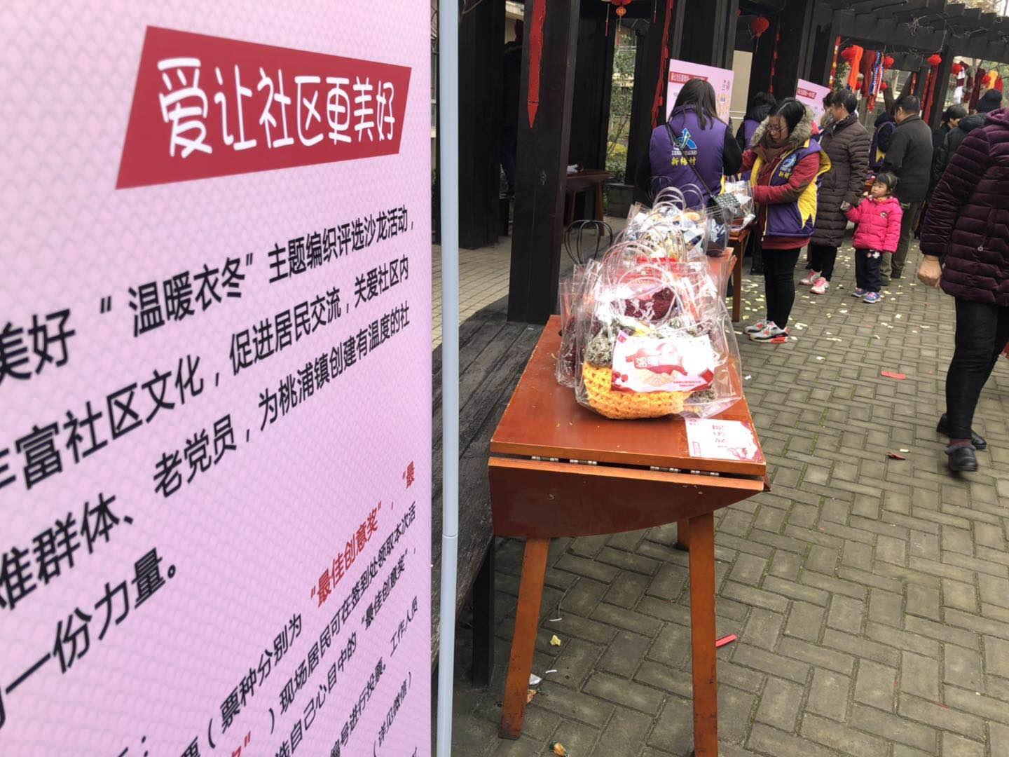 为让更多的社区志愿者、社区困难人员能在这寒冷的冬季拥有别样的温暖,今天下午,由桃浦镇文明办、桃浦镇妇女联合会主办,上海绿梧桐公益促进中心承办的“温暖衣冬”,爱让社区更美好——主题编织评选活动在桃浦镇新杨和苑中央花园正式开展。