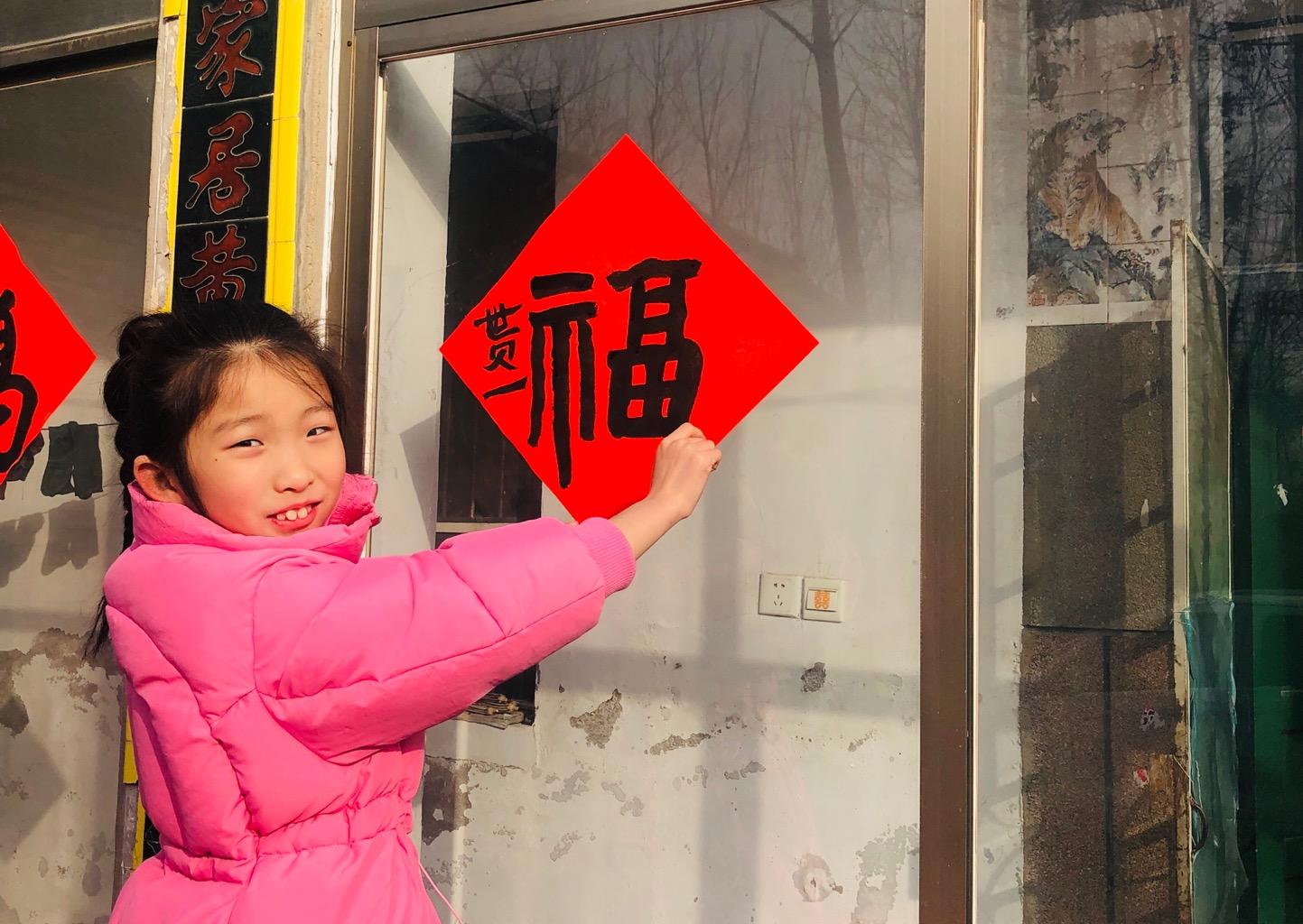 但,接下来你看到的春联,则是由家里还在读小学的孩子们写成的,最大11岁,最小只有7岁哦!