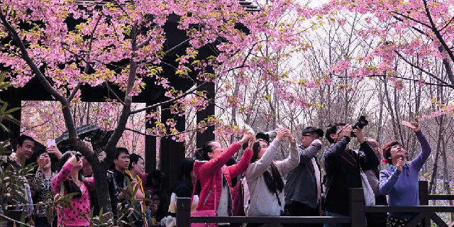 上海植物园内,几株早樱品种也已经开花。上海植物园种植樱花至少已经有40年历史。“今年这批樱花开得可以说最早的一次。”上海植物园园艺科助理工程师葛卫佳介绍,寒樱和钟花樱都属于早樱品种,就上海植物园的物候记录来看,一般气温稳定在5℃以上,持续10天,这些早樱品种就会从冬眠中苏醒过来,开花。