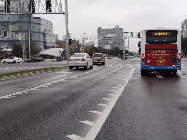 其实,这是一条可变导向车道,像这样的变向车道南桥共有2条,一条在环城东路航南公路路口,另一条在沪杭公路国顺路。