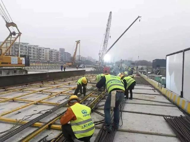 此处处于重要交通枢纽地带,车流量密集,交通疏解任务繁重,且受地下承压水的影响,成槽难度加大。经过缜密部署,项目于2月23日开始进行地下连续墙成槽施工。