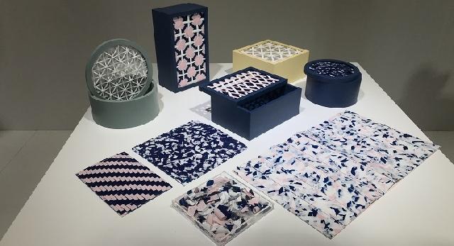 设计团队是来自北京的RE:Studio,工作人员告诉周到君,展品当中的收纳盒和杯垫,材料都是取自北京某咖啡馆开业当天,顾客们用掉的吸管。