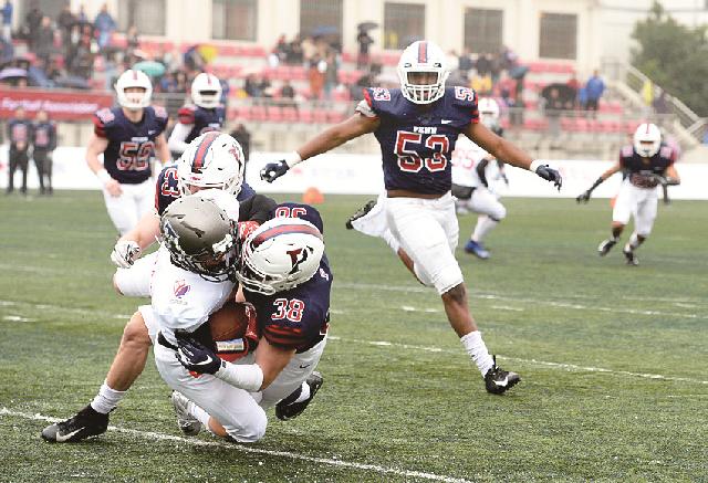 由区体育局、市橄榄球协会主办的国际静安城区精英挑战赛暨“大使碗”中美橄榄球邀请赛,于3月9日在上海火车头体育场举行。一支从全国业余橄榄球爱好者中选拔而成的上海国际精英队,与来自美国宾夕法尼亚大学的校橄榄球队,展开了一场力量与激情的较量。
