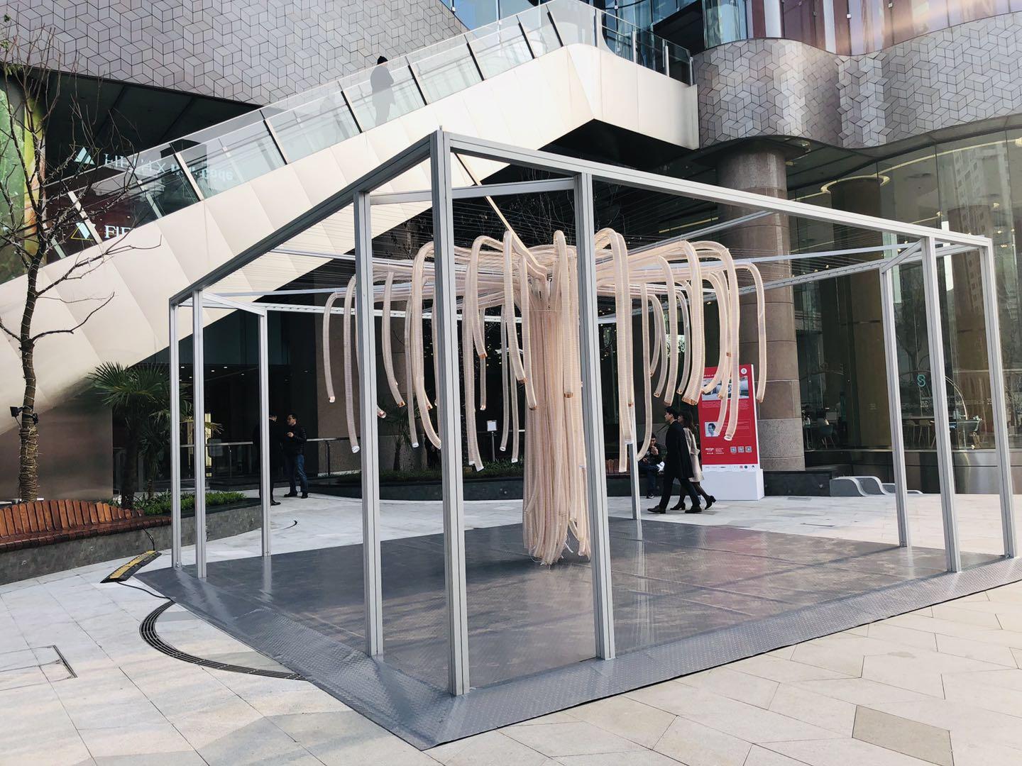 小编看到的第一个装置就是新天地广场这颗“树”,这个像柳树一样的装置由透明管道组成,灵感来自于小时候玩的传声筒游戏,人们可以在“树枝”的一端将秘密倾述给另一端的朋友。